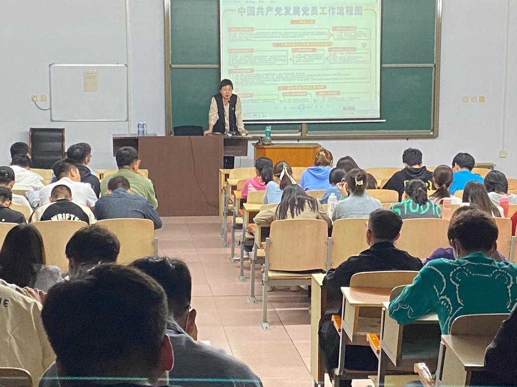 首先,马振寰老师向2021级新生和专升本学生的到来,表示忠心的祝贺和热烈的欢迎,接着为同学们详细的介绍了中国共产党发展党员的工作流程,成为正式党员需要经历五个阶段:申请入党,入党积极分子的确定和培养,发展对象的确定和考察,预备党员的接收,预备党员的教育、考察和转正。随后,马振寰书记对每一个阶段需要准备的资料和相关要求进行了详细的介绍,其中包括入党申请书的书写要求和规范、入党材料的审核以及发展对象、预备党员的考察和接收等。她强调,在大学发展党员不仅看重学习成绩,更看重思想觉悟、参与学校各类活动的积极性和学习、生活、工作中的先进性与示范性体现。