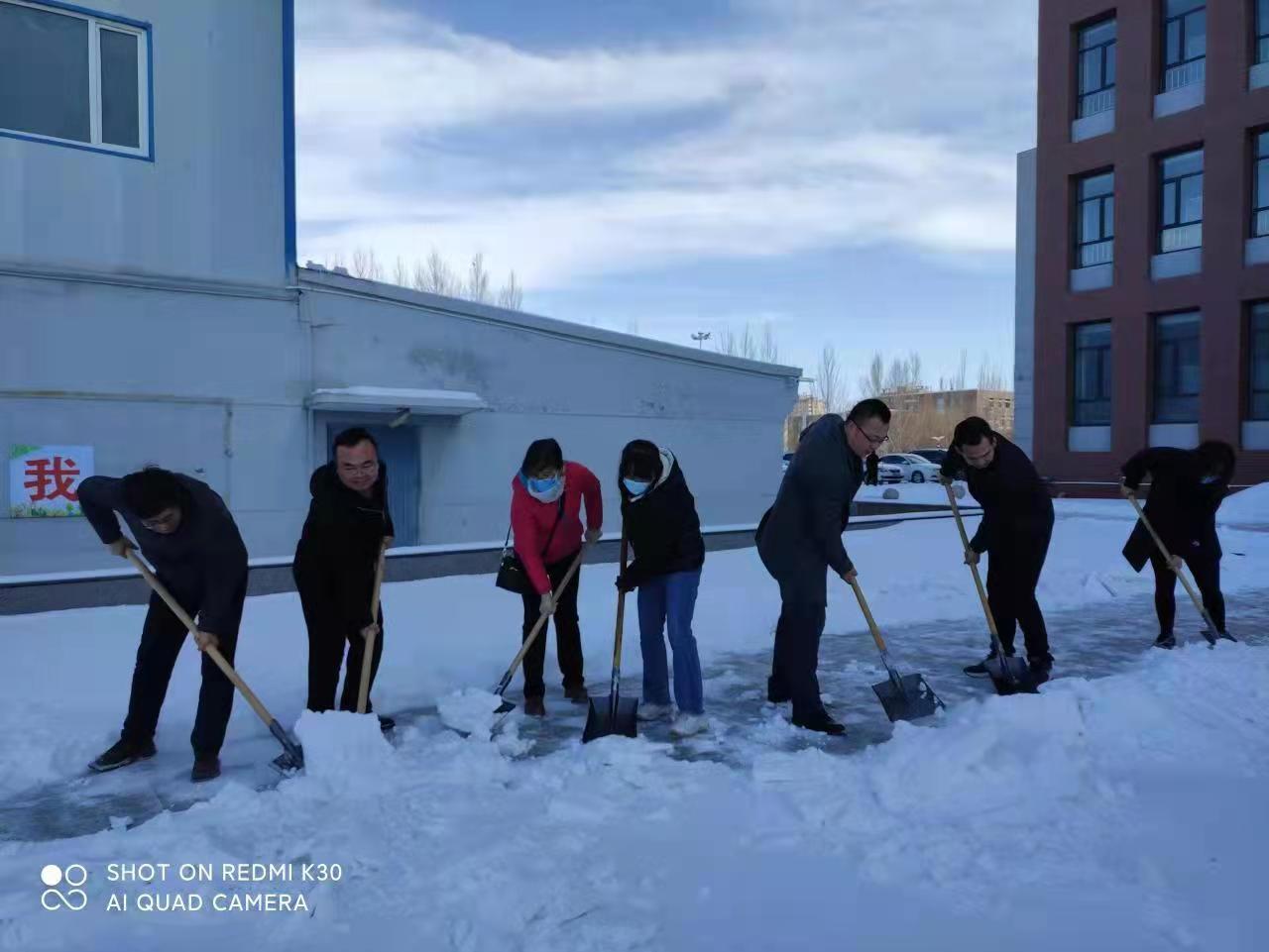 这次铲冰除雪活动,对逸夫楼东侧停车场和逸夫楼后部分路面积雪进行了清除,确保了来往车辆及广大教师的出行安全,践行了“我为群众办实事”的目的,充分展现了党员干部团结一致、齐心协力的精神面貌,增强了党员的宗旨意识、责任意识和奉献意识。