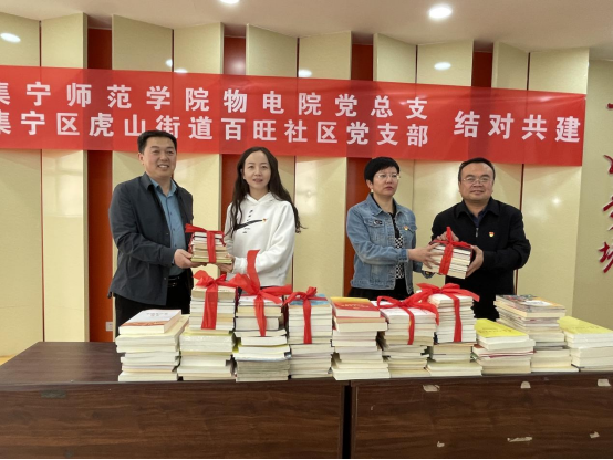 为深入学习贯彻党的二十大精神,进一步加强与共建单位之间的合作、交流,丰富共建社区居民的精神文化生活,精心打造一处党员群众读书学习的新阵地。4月23日上午,beat365在线唯一官网物理与电子信息工程学院党总支与共建单位集宁区虎山街道百旺社区党支部共同开展了“捐书筑梦,共沐书香”主题党日活动。