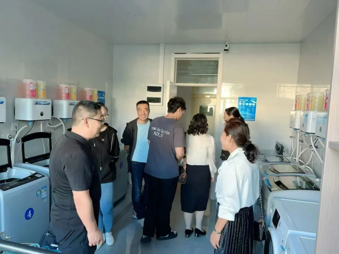 随后,教师们来到了宿舍中新建的洗衣房进行参观,感叹洗衣房中的自助洗衣机和自助洗鞋机给学生们带来的便利。