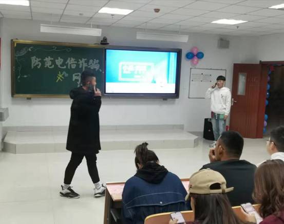 伴随着热情洋溢的开场舞此次“拒绝非法网贷,谨防电信诈骗”主题团日活动拉开了帷幕,通过“和谐校园,平安先行”法制宣讲进课堂的PPT演示,对什么是电信诈骗、电信诈骗的趋势和类型、网络诈骗的类型、新型电信网络诈骗、经典案例、防范措施以及补救措施做出详尽的阐述。随后播放了有关网贷危害的视频,视频中生动真实的案例使同学们进一步了解了校园“不良网贷”的主要特点、危害以及防范措施。此次团日活动内容丰富多彩,依据真实事件改编的小品,还有生动形象的相声,在趣味中向同学们讲述了非法网贷和电信诈骗的危害,让同学们对非法网贷和电信诈骗有了深刻的认识与理解。倾心演唱的相关歌曲,表达了同学们对非理性消费和非法网贷的深思。