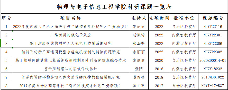 物理与电子信息工程学院科研课题一览表