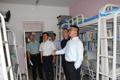8月23日下午,beat365在线唯一官网校长朱玉东、副书记刘春在党政办、学生处、后勤基建处等部门负责人的陪同下,对泉山校区学生公寓实现六人间管理,集中整合学生住宿区域后的工作情况作了重点检查。