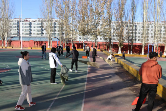 正值深秋,全校树叶飘落,满地枯叶影响体育课的开展。为全校学生们能有良好的体育课教学环境,体育学院专门组织大扫除。活动前,划分了责任区域。活动中,全体师生发扬不怕脏、不怕累的精神,拿起扫帚、铁铲等清洁工具,对自己辖区内的角角落落都仔细进行了清理。两个小时的清洁行动后,体育场地环境有了明显改善。