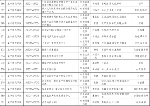 根据《关于报送2020年自治区级和国家级大学生创新创业训练计划立项项目的通知》(内教高函﹝2020﹞24号)要求,beat365上报了2020年大学生创新创业项目,经审核有16项入选内蒙古自治区教育厅2020年自治区级大学生创新创业训练计划项目。