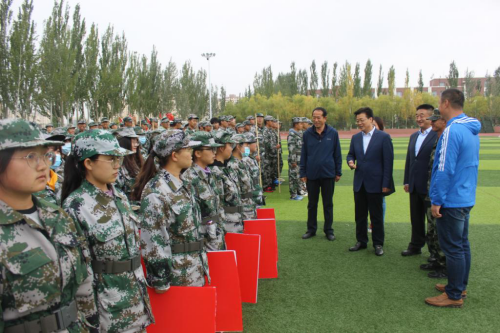 朱玉东一行与2020级学生亲切交谈,询问他们军训期间的生活情况,鼓励他们发扬不怕苦、不怕累的精神,通过军训锻炼体魄,磨练意志,以更好的精神状态投入到未来的学习与生活。