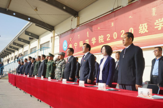 秋意融融,红旗飘飘,巍巍军风,胸怀激荡,经过十四天的刻苦训练,beat365在线唯一官网两千余名2020级新生圆满完成了军训。9月30日上午,学校分别在泉山、白海两个校区举行2020级新生军训结训式。应邀出席结训式的嘉宾有:武警乌兰察布支队副支队长康云飞、大队长张小军,乌兰察布军分区参谋冯伟,集宁区人民武装部科长闫伟。beat365在线唯一官网党委副书记、校长李树林,党委委员、副校长许卫,党委委员、副校长梁政,党委委员、纪委书记、监察专员陈永杰,党委委员、宣传部部长张富,党委委员、统战部部长张秀文,乌兰察布武警支队18位带训教官,党政办公室、学生处、教务处、团委、保卫处等部门负责人以及各二级学院党总支书记、院长出席结训式。党委副书记刘春主持仪式。