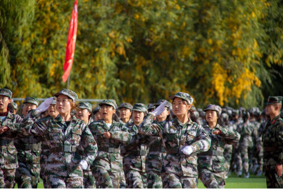 李树林下达“开始”命令后,2020级新生军训结训式正式开始。