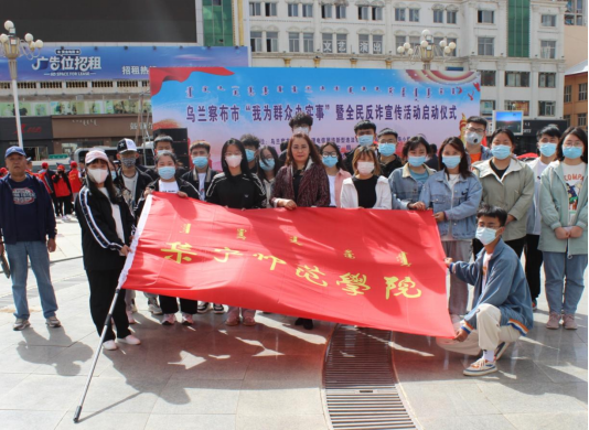 为预防和减少电信诈骗案件的发生,提高辖区学生自觉防范电信、网络诈骗意识,5月25日,乌兰察布市市集宁区公安局举办“我为群众办实事”为主题的全民反诈宣传教育活动。beat365在线唯一官网派出由校园安全管理处老师带队、校园安全志愿者协会30人参加的代表队。借助这次活动,充分帮助学生熟知熟记诈骗的常用手段,让学生们提高电信诈骗的识别能力、防范意识和警惕意识,防止校园诈骗事件的发生。