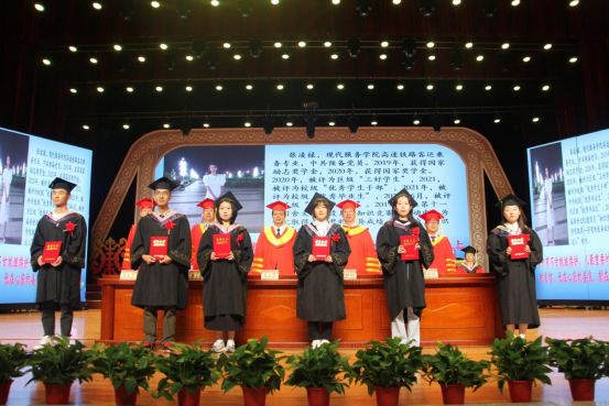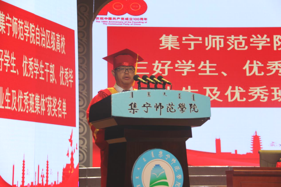 李凤斌宣读了获得自治区级“三好学生、优秀学生干部、优秀毕业生”及优秀班集体表彰名单,校领导为优秀毕业生代表颁奖。