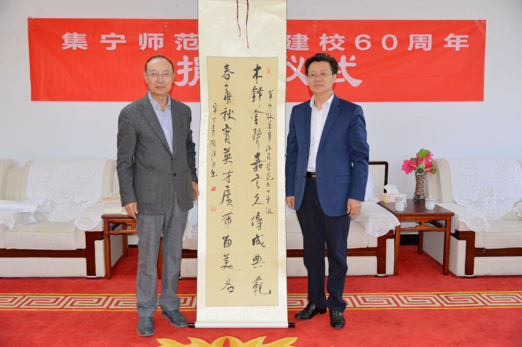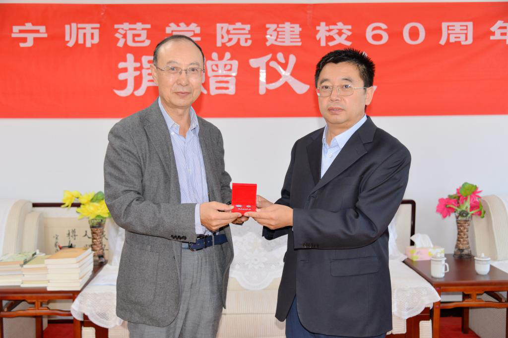宋生贵向母校捐赠了他的著作30余种,捐赠了他为母校60年校庆撰写的联句书法:“木铎金声嘉言久传成典范,春华秋实英才广布留美名。”刘前贵书记、朱玉东校长接受了捐赠,聘任宋生贵为学校特聘教授,向宋生贵夫妇赠送了学校校徽。