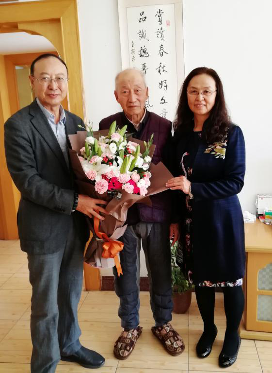 会见后,宋生贵教授夫妇拜望了他的老师原中文系主任惠俊智先生,向惠老师敬献了鲜花,表达对老师的崇敬之情。
