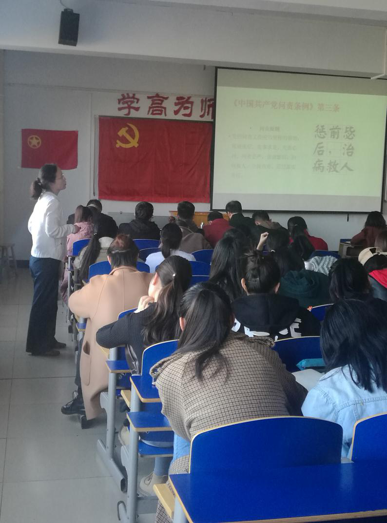 11月1日下午,文学院党总支开展了研读《中国共产党问责条例》、践行制度的专题党日活动,文学院院长李俊主讲,文学院党总支书记张来锁、副书记张一弘以及教师支部成员和学生支部成员共同参加了学习。
