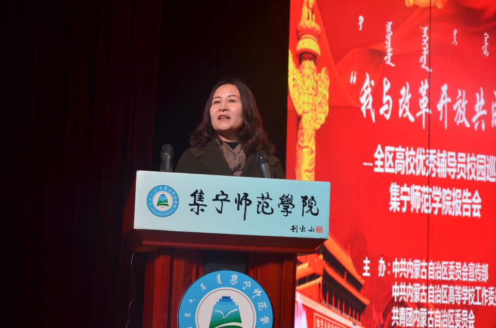 张富在致辞中指出,此次巡讲是为全面贯彻落实习近平总书记在全国宣传思想工作会议和全国教育大会上的重要讲话精神,隆重庆祝改革开放四十年的重要举措。活动的举行就是要教育和引导广大青年学生,爱国、担当、奋斗,激发广大青年的爱国爱家热情,汇聚广大青年坚定“四个自信”“将改革进行到底”的精神力量,不断凝聚争做担当民族复兴大任的时代新人的使命感、责任感;就是要教育和引导广大青年学生,要梦想成真就要脚踏实地,从点滴做起、从现在做起、从自己做起;就是要教育和引导广大青年学生为改革开放点赞,为内蒙古喝彩,为祖国打CaII,领航正能量,团结向前进。
