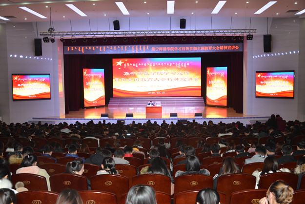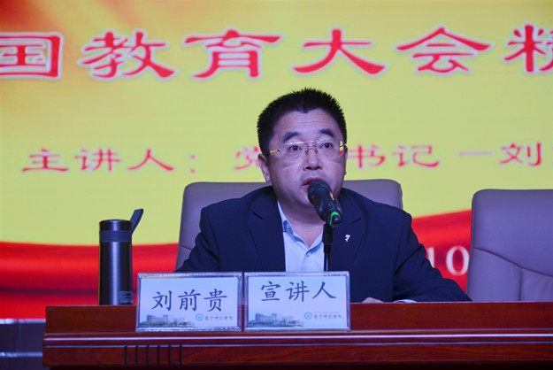 12月11日,beat365在泉山校区逸夫楼报告厅召开学习宣传贯彻全国教育大会精神宣讲会,校领导班子成员,党委委员,副处级以上干部参加宣讲会。党委副书记刘春主持宣讲会。