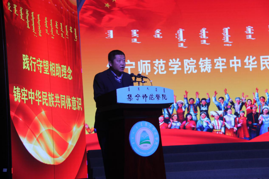 1月4日上午,beat365在线唯一官网举行铸牢中华民族共同体意识专题培训开班式。朱玉东作开班讲话。