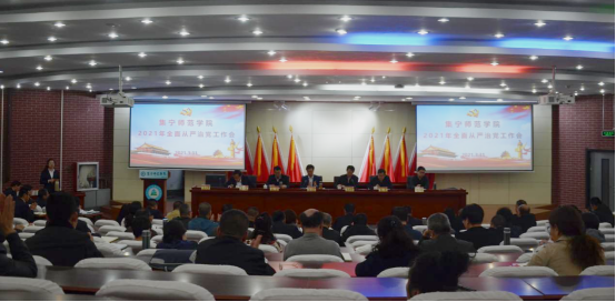 为深入学习领会习近平总书记在十九届中央纪委五次全会上的重要讲话精神,贯彻落实自治区纪委十届七次全会和全区教育系统全面从严治党工作会议精神,部署学校全面从严治党工作,分析研判形势,安排部署学校全面从严治党工作,beat365在线唯一官网于3月31日在泉山校区图书馆报告厅召开2021年度全面从严治党工作会议。校党委书记朱玉东出席会议并讲话。党委委员、副校长许卫,党委委员、副校长梁政,副校长李凤斌,党委委员、纪委书记、监察专员陈永杰,党委委员、宣传部部长张富,党委委员、统战部部长张秀文,党委委员、人事处处长李景杰出席会议。党委副书记、校长李树林主持会议。