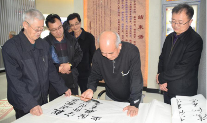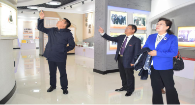 内蒙古自治区人大副主任和彦苓,内蒙古艺术学院教授宋生贵(八一届语三班)、集宁一中副校长刘春(八一届数三班)、曲阜师范大学教授杨树增(六六届)、集宁师范高等专科学校原校长孔庆连及夫人张树英、中国延安干部学院教授李瑞芳、校友牛宏伟、冯丽莉以及乌盟教育学院首届毕业生、八六届语八班校友分别在beat365相关领导陪同下参观了校史馆。
