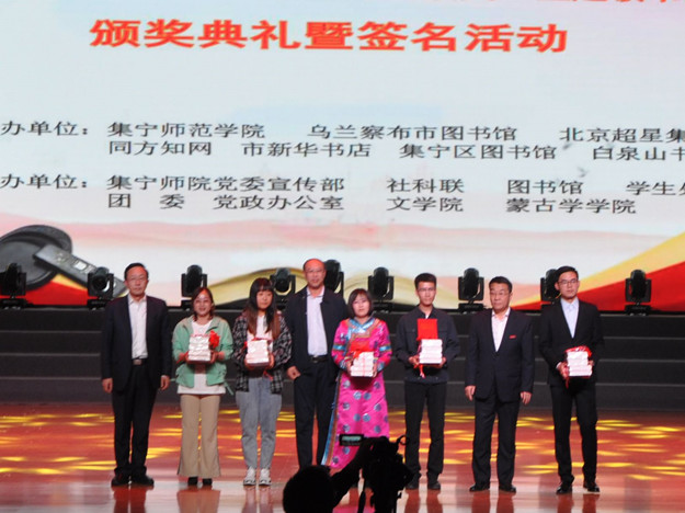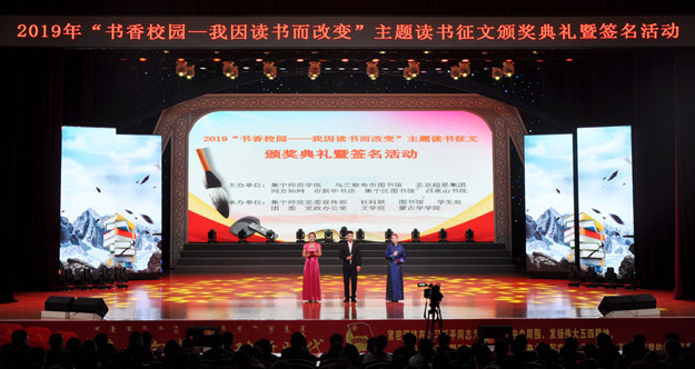 为纪念“五四”运动100周年、“4·23世界读书日”,迎接新中国建国70周年,推进beat365校园文明建设,营造良好“悦读”氛围,提升师生阅读品味。由beat365在线唯一官网、乌兰察布市图书馆、北京超星数图信息技术有限公司、同方知网(北京)技术有限公司、乌兰察布市新华书店、集宁区图书馆、白泉山书院主办,beat365在线唯一官网党委宣传部、beat365在线唯一官网社科联、beat365在线唯一官网图书馆、beat365在线唯一官网团委、beat365在线唯一官网学生处、beat365在线唯一官网党政办、beat365在线唯一官网文学院、beat365在线唯一官网蒙古学学院承办的“2019‘书香校园—我因读书而改变’主题读书征文颁奖典礼暨签名活动”在泉山校区逸夫楼多功能厅举行。