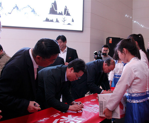 颁奖仪式结束后,现场领导、嘉宾、老师和同学们进行了“书香校园---我因读书而改变”签名活动。