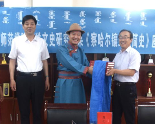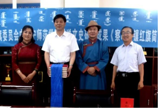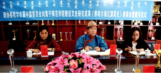 6月29日,政协察右中旗委员向beat365在线唯一官网赠送文史研究成果《察哈尔镶红旗简史》座谈会暨赠书仪式在蒙古学学院会议室举行。