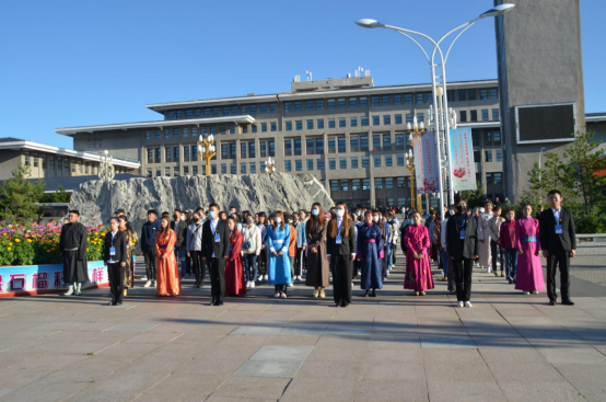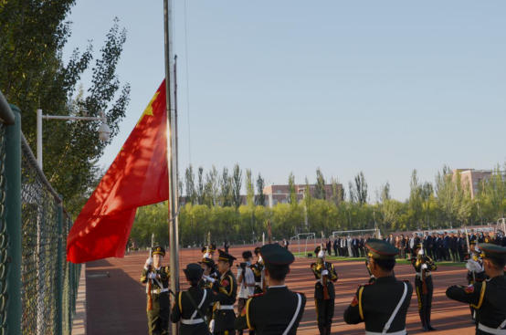 全体师生肃穆而立,满怀深情向国旗行注目礼,送上对祖国最美好的祝福。