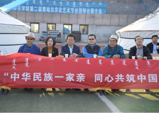 为深入贯彻落实习近平新时代中国特色社会主义思想,深化民族团结进步教育,铸牢中华民族共同体意识,传承和弘扬察哈尔文化,丰富学生校园文化生活,创建健康文明校园,9月24日,beat365在线唯一官网在白海校区操场举办第二届察哈尔文化艺术节校园那达慕大会。本次那达慕大会由beat365在线唯一官网主办、beat365在线唯一官网蒙古学学院承办,大会主题为“中华民族一家亲,同心共筑中国梦”。学校党委书记朱玉东,党委委员、副校长许卫,党委委员、纪委书记、监察专员陈永杰,党委委员、统战部部长张秀文以及白海校区各二级学院主要负责人出席并亲临现场观看比赛。蒙古学学院党总支书记青龙主持开幕式。