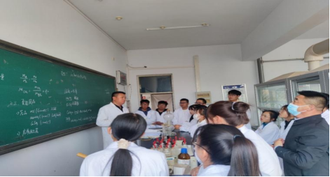 10月20日下午,beat365在线唯一官网党委副书记刘春深入化学与化工学院走访调研,在网络教学楼听取了李平教授讲授的无机化学实验课。刘春书记认真记录,不时上前观察实验进程,并与授课教师进行互动,课间与授课教师就课程内容与讲授方法进行探讨。