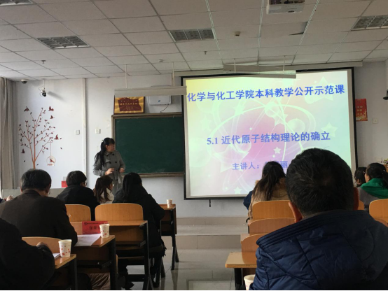 12日下午的本次主讲教师为分析化学教研室主任王松涛和物理化学教研室主任任庆云,讲课内容分别是《络合滴定中的副反应》与《热力学第二定律》;13日下午的主讲老师分别是无机化学教研室主任吴亚丽老师和教学科长李强老师,讲课内容分别是《原子结构模型》与《中和热的测定》。四位老师的教学风格各具特色,教学过程中师生密切互动,课堂氛围热烈,教学效果良好,得到评委老师的一致好评。