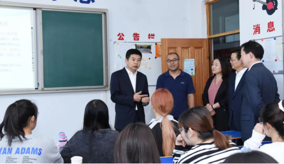 费东斌一行先后到教学楼、学生食堂、操场周边等处进行了实地考察,了解beat365开学复课后在教学运行、教育教学设施和学校环境建设等情况。费东斌看望了正在上课的师生,同师生们进行了亲切而愉悦的交谈,详细问询了专业课程,就业方向等情况,关心了解他们在教学、学习、生活中面临的问题和困难,向学生送上美好的祝福,勉励学生勤学务实、奋发有为。在学生食堂,费东斌详细询问了学生住宿、饮食方面对疫情防控常态化工作的落实情况,提出要切实采取积极有效的常态化疫情防控措施,保障学生生命健康安全。