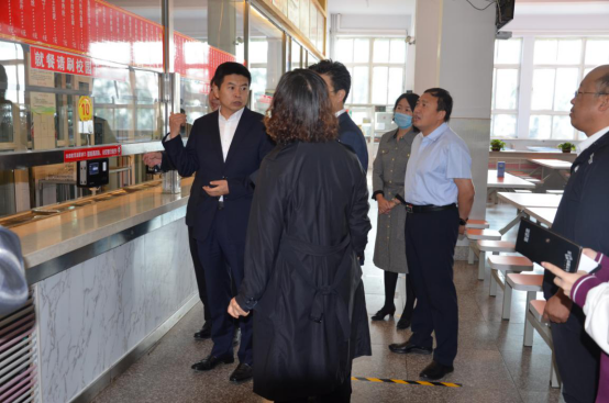 费东斌在学生食堂深入了解学校基础设施建设情况