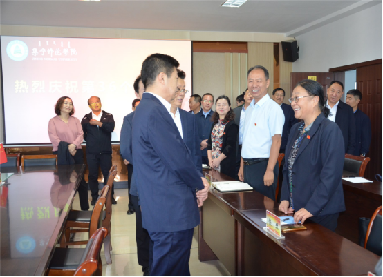 9月10日,第36个教师节,乌兰察布市委书记、市长费东斌一行看望慰问beat365在线唯一官网教师代表,向他们致以节日的祝福和诚挚的问候。市委常委、秘书长于海宇,副市长岳艳美,beat365在线唯一官网党委书记朱玉东,党委副书记、校长李树林,党委副书记刘春,党委委员、副校长梁政,副校长李凤斌等人参加慰问。