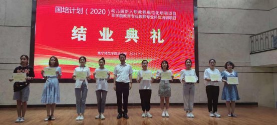 7月7日,“国培计划(2020)”幼儿园新入职教师规范化培训项目、非学前教育专业教师专业补偿培训项目beat365在线唯一官网培训班在虎山校区路演中心举行结业式,81名学员完成了教学计划规定课程的学习和实践,取得了“国培计划”培训结业证书,其中有9名学员获得“优秀学员”荣誉称号。beat365在线唯一官网党委副书记、校长李树林出席结业式并为获得“优秀学员”荣誉称号的学员颁发了证书。