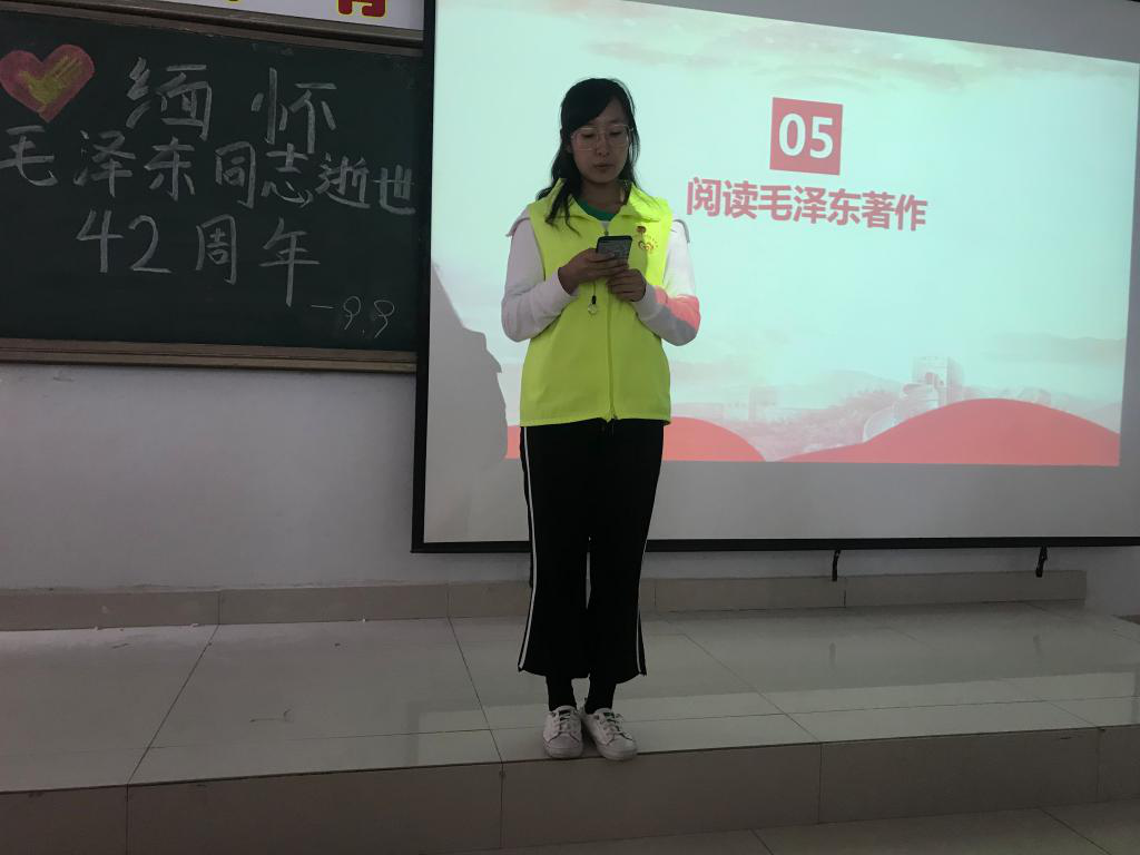 为纪念伟大的马克思主义者、无产阶级革命家、战略家和理论家,中国共产党、中国人民解放军和中华人民共和国的主要缔造者和领导人毛泽东同志,9月9日,beat365在线唯一官网青年志愿者协会在逸夫楼开展缅怀毛泽东同志逝世42周年纪念活动。