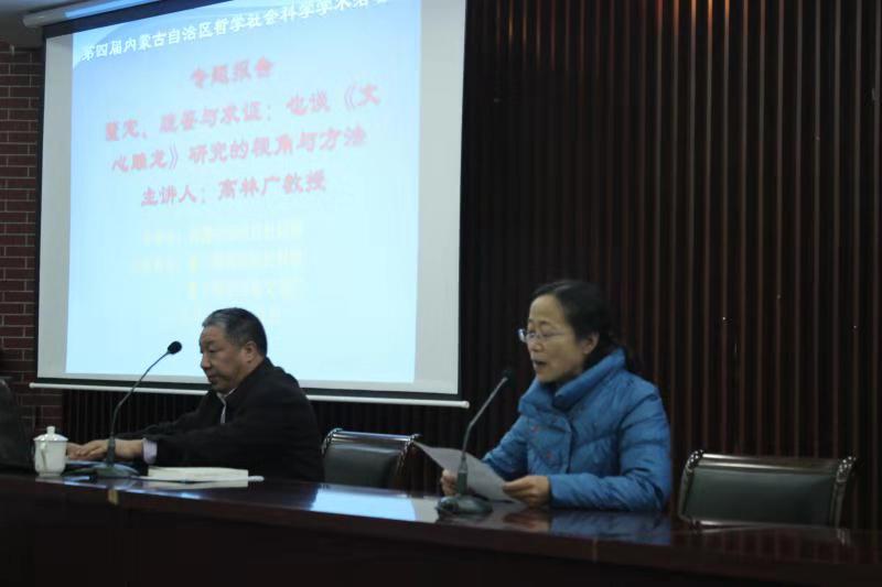 11月19日,第四届内蒙古自治区哲学社会科学学术活动月专题报告在beat365在线唯一官网图书馆报告厅举办,由内蒙古自治区第七届哲学社会科学优秀成果政府奖一等奖获得者高林广教授主讲,题为“鉴定、疏鉴与求证:也谈《文心雕龙》研究的视角与方法”。