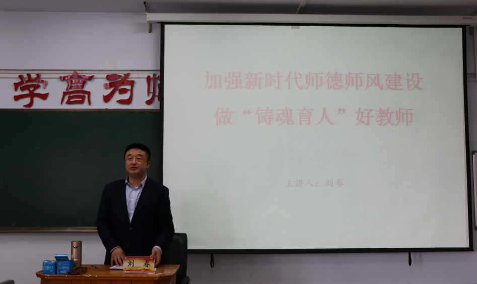 刘春副书记借用《管子》中“一年之计,莫如树谷;十年之计,莫如树木;终身之计,莫如树人。”这句话引出本次讲座的主题,他指出新时代教师要有理想信念,有道德情操,有扎实知识,有仁爱之心。要做学生锤炼品格的引路人,做学生学习知识的引路人,做学生创新思维的引路人,做学生奉献祖国的引路人。