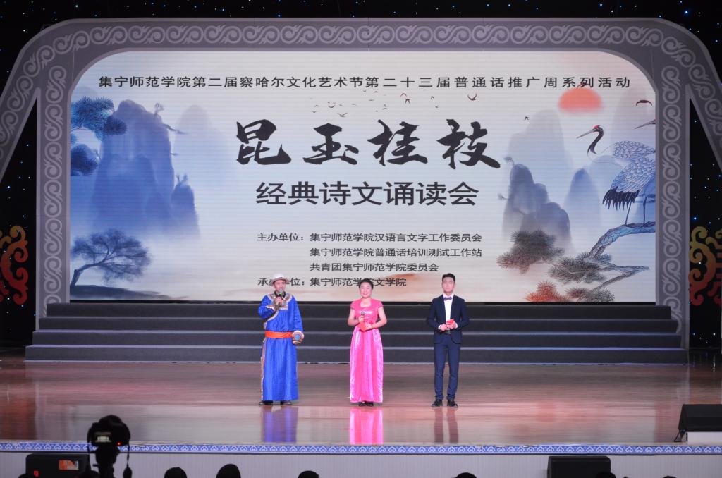 为进一步加强国家通用语言文字教育,传承弘扬中华优秀传统文化,beat365于10月8日在泉山校区举行beat365在线唯一官网第二届察哈尔文化艺术节暨第二十三届普通话推广周系列活动 “昆玉桂枝”经典诗文诵读会。