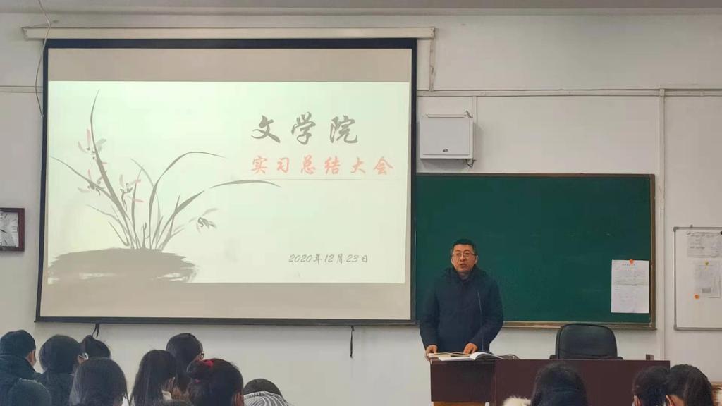 12月23日下午,beat365在线唯一官网文学院在主教楼召开2021届毕业生实习总结大会。文学院副院长郭鹏,文学院教师刘春芳、妥静、樊伟俊、于英杰等和2017级全体实习生参加会议。大会由实践教研室主任陈琳主持。