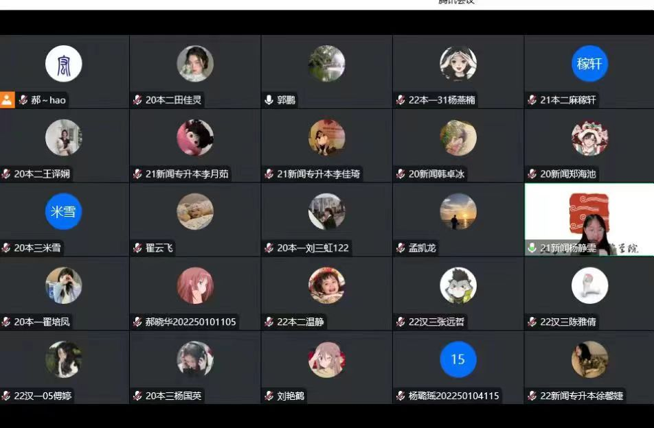 为了进一步做好本学期教学质量监控与评价工作,全面了解和基本掌握本学期线上教学情况,确保教学秩序正常,切实解决学生在学习中遇到的实际问题,2022年11月30日,文学与新闻传播学院采取线上会议的方式召开了2022-2023学年第一学期教学座谈会,会议由教学科郝晓宏主持,副院长郭鹏及32名学生代表参加了本次座谈会。