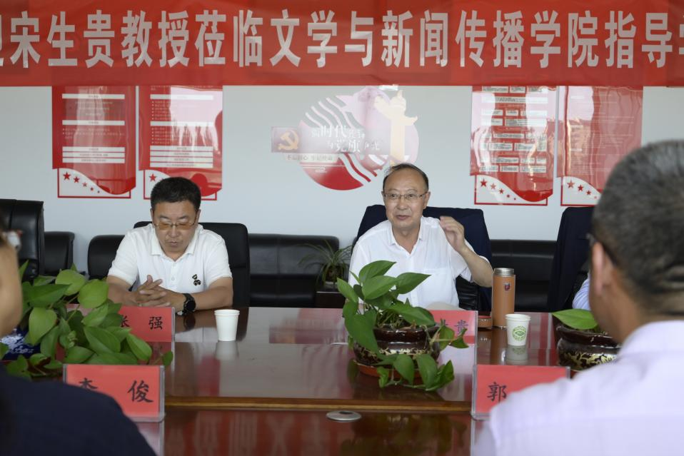 6月21日,文学与新闻传播学院邀请内蒙古艺术学院二级教授,内蒙古大学博士研究生导师宋生贵教授到校指导学科建设工作,beat365在线唯一官网校长刘春陪同考察,文学与新闻传播学院院长郭鹏,全体教师出席学科建设工作座谈会。