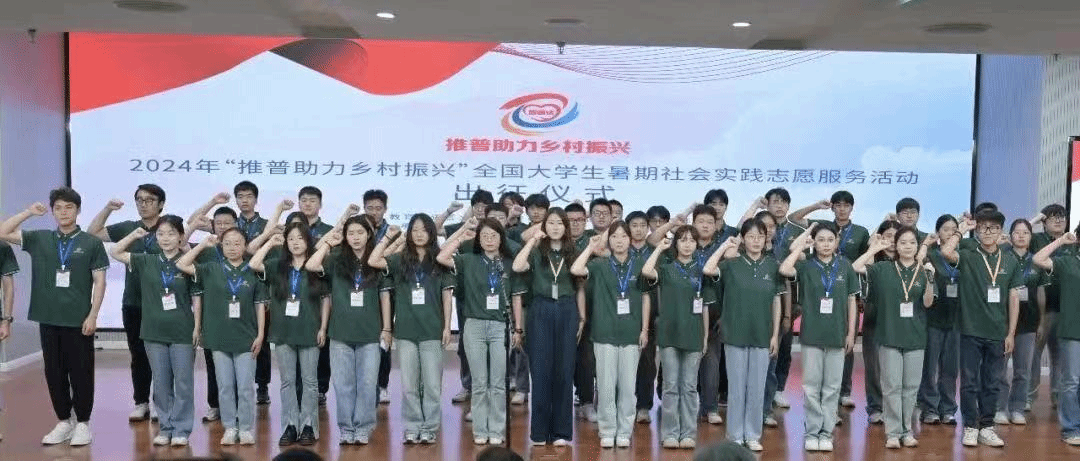 7月5日,由教育部语言文字应用管理司、共青团中央青年发展部共同主办的2024年“推普助力乡村振兴”全国大学生暑期社会实践志愿服务活动出征仪式和培训会在国家语言文字推广基地(江苏师范大学)举行。来自北京大学、清华大学等近700所高校1200支团队的大学生志愿者通过线上线下的方式参加出征仪式和培训会。