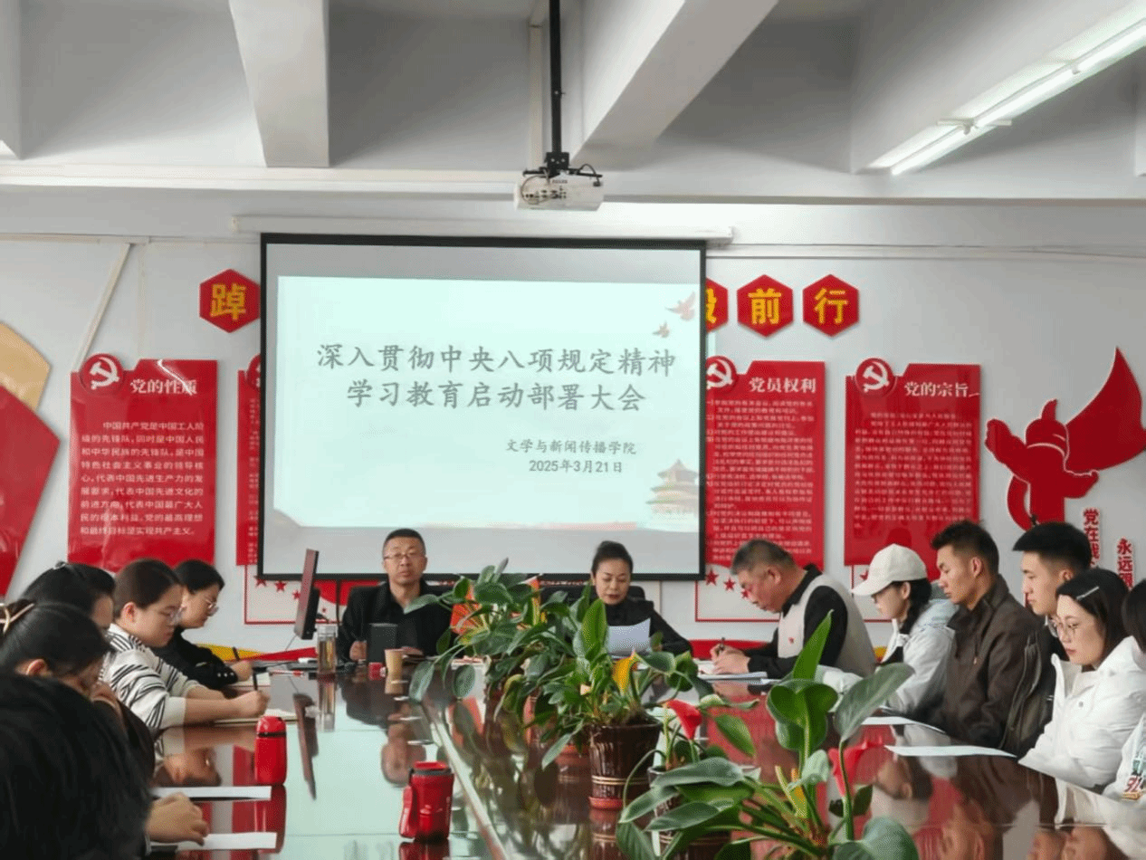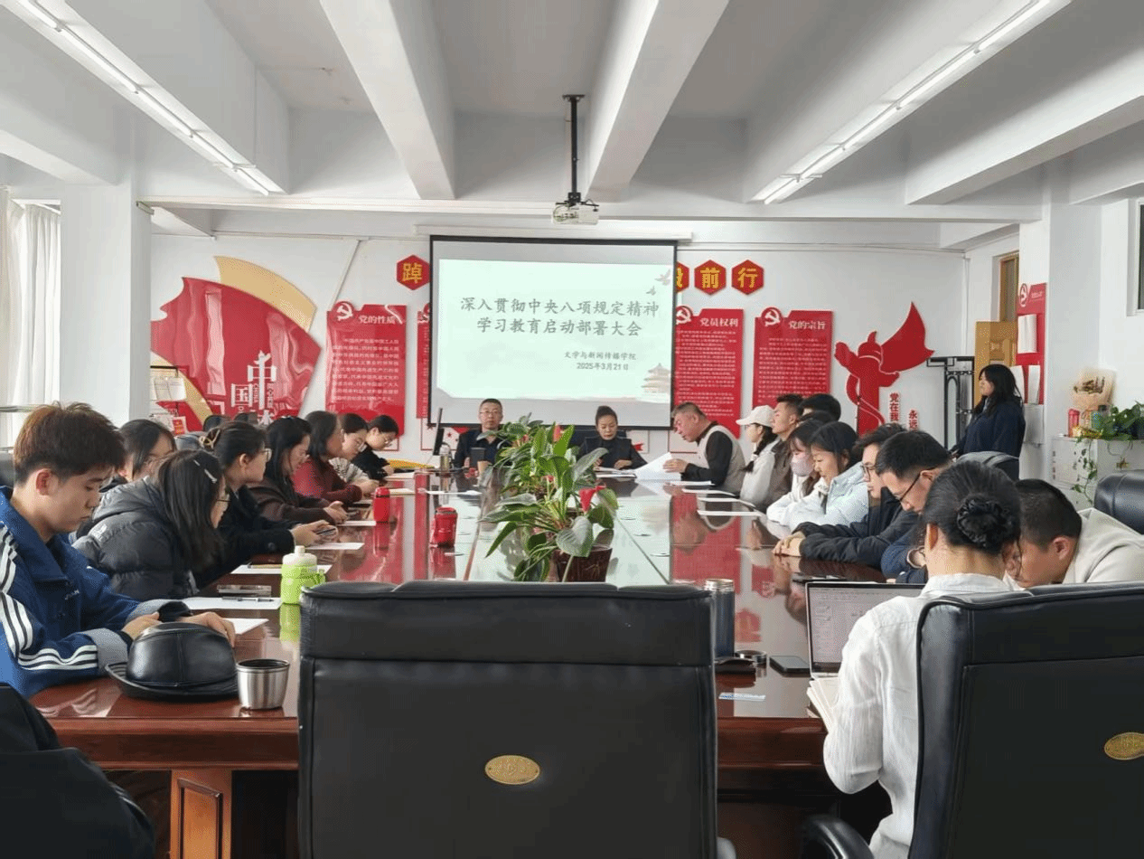 为深入贯彻落实中央八项规定精神,文学与新闻传播学院于3月21日下午,召开深入贯彻中央八项规定精神学习教育启动部署大会。文学与新闻传播学院党总支书记张一弘主持会议,全体党员参加会议。