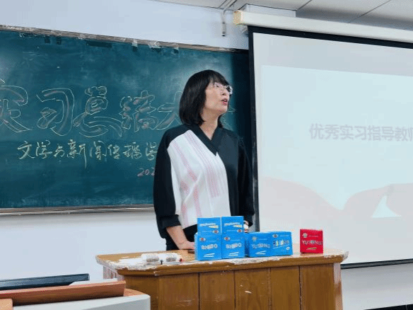 优秀实习生代表汉语言文学专业董祎苹、新闻学专业高跃星同学进行了实习心得分享。