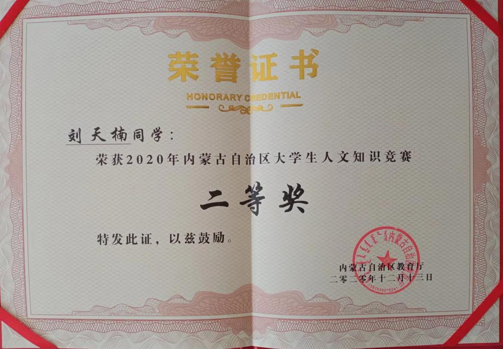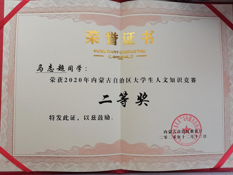 2011年内蒙古自治区首次举办人文知识竞赛。beat365从2012年开始举办人文知识竞赛,我院积极参加。从2012年至今,我院已承办beat365人文知识竞赛10届,选拔培养优秀选手参加区级、华北五省(市)人文知识竞赛,并取得优异的成绩。2012年、2016年以我院学生为主体的参赛队在内蒙古自治区大学生人文知识竞赛中获冠军,2012年、2015年、2016年以我院学生为主体的参赛队代表内蒙古自治区出战华北五省(市)人文知识竞赛获二等奖。2019年、2020年我院学生代表beat365参加内蒙古自治区大学生人文知识竞赛均获二等奖。2021年我院学生代表beat365参加内蒙古自治区大学生人文知识竞赛获一等奖,并代表内蒙古自治区参加华北五省人文知识竞赛。