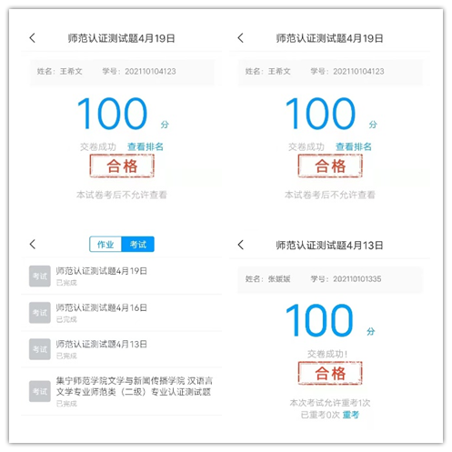 为强化汉语言文学专业认证理念,按照师范类专业认证与评估要求,结合学院认证工作安排我院分别于4月13日、4月16日、4月19日组织全体学生开展了师范类专业认证线上测试。