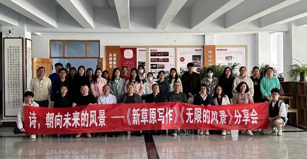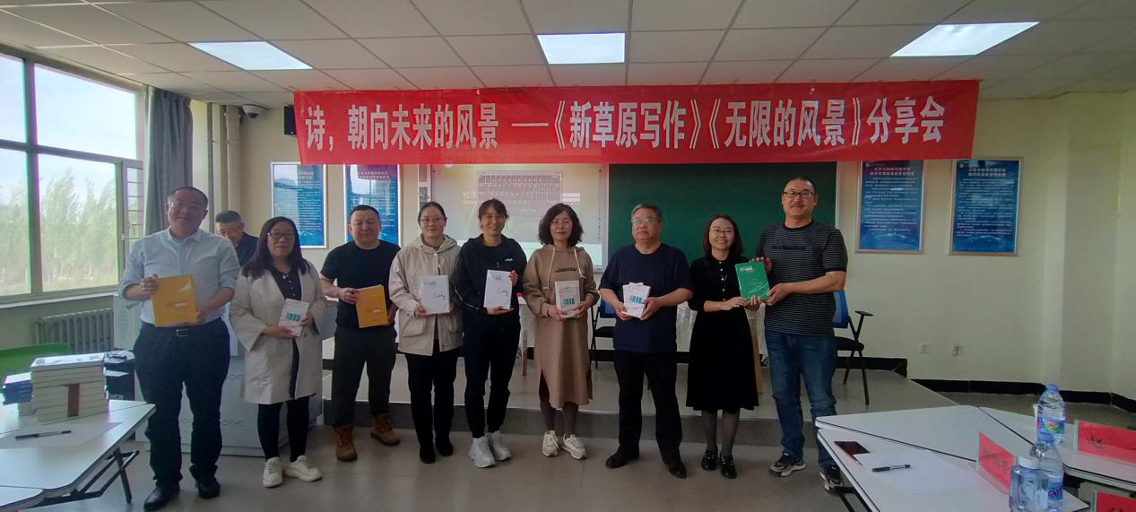 5月21日下午,由文学与新闻传播学院主办,beat365在线唯一官网创意写作中心、beat365在线唯一官网语言文学研究所、beat365在线唯一官网内蒙古当代文学研究所承办的“诗,朝向未来的风景——《新草原写作》(2022)《无限的风景》分享会”在教学主楼319教室举办。诗人、《新草原写作》主编徐厌,诗人、作家、编剧、《新草原写作》学术主持赵卡,诗人、香港《大公报》内蒙古分社社长乔辉,诗人、《作家网》编辑、《草原》特邀编辑刘不伟,诗人、《beat365在线唯一官网学报》编辑部主任杨瑞芳、诗人宇萍、孙旭应邀莅临现场。文学与新闻传播学院领导班子及部分教师、学生出席活动。分享会由文学与新闻传播学院院长郭鹏主持。
