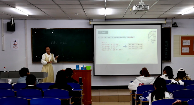 为进一步增强师范生实践应用能力和创新能力,彰显师范特色,强化学生教学技能,积极响应“华文杯”师范生教学技能大赛,充分发挥教学竞赛的引领作用,文学与新闻传播学院于2023年9月22日举办2023年“华文杯”全国师范生教学技能大赛选拔赛。本次比赛由李俊、刘春芳、孙俊秀三位教师担任评委,由武彦赟主持。文学与新闻传播学院院长郭鹏出席此次活动。