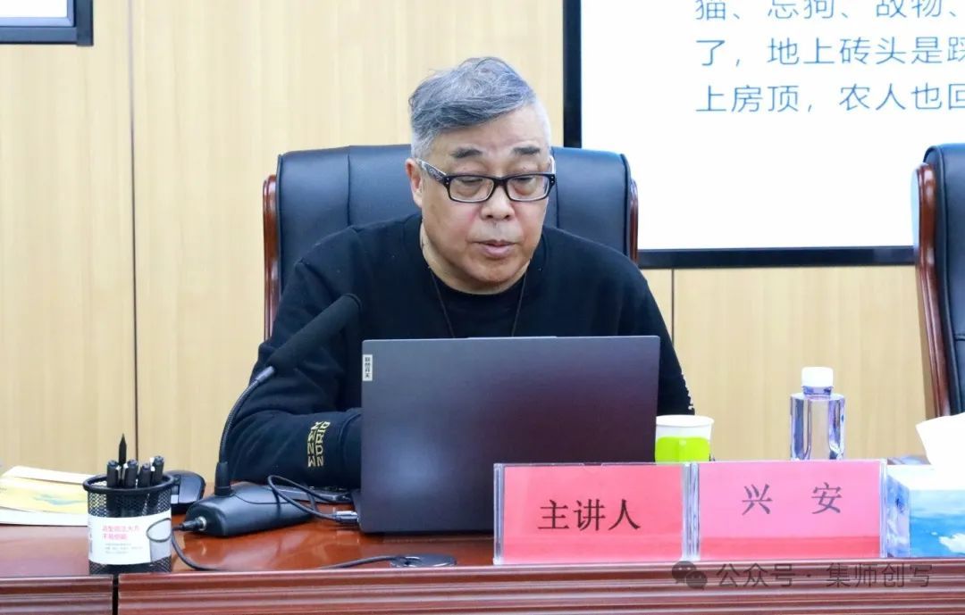 兴安老师在讲座中以身边的作家并结合自身创作为例,分别从散文是什么、散文要言之有物、功夫要在散文之外、散文的语言、散文的细节等多个方面讨论了如何写好散文这一关键问题。此外,他结合近年来《草原》杂志开设的自然写作专栏,探讨了自然生态写作的可能性以及自然生态写作与乡村之间的关系,阐释了自然生态写作的艺术境界,使听众深刻领会了散文的妙处。兴安老师在结合其丰富的创作与编审经验的基础上,以幽默诙谐的语言和独到的见解,将散文创作的内在肌理抽丝剥茧,为广大师生奉献了一场别开生面的文学盛宴。