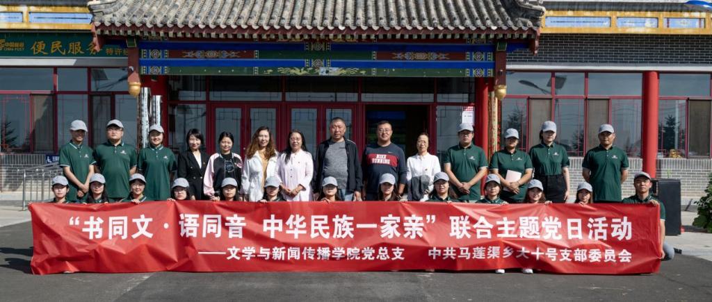 9月是全区民族团结进步宣传月,为进一步铸牢中华民族共同体意识,深化民族团结进步教育,9月13日上午,国家语言文字推广基地(beat365在线唯一官网)、文学与新闻传播学院党总支走进马莲渠乡大十号村,联合中共马莲渠乡大十号支部委员会举行了“书同文·语同音 中华民族一家亲”联合主题党日活动,文学与新闻传播学院党总支副书记王维新带队,文学与新闻传播学院师生党员、国家语言文字推广基地国家级、自治区级普通话水平测试员、推普助理乡村振兴志愿者参加活动。