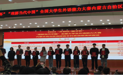 11月3日,由内蒙古自治区教育厅主办的“外研社·国才杯”“理解当代中国”全国大学生外语能力大赛内蒙古自治区选拔赛在内蒙古大学圆满落幕。本次选拔赛涵盖短视频、综合能力、演讲、口译、笔译5个赛项,吸引了来自自治区19所高校,226名同学参赛。